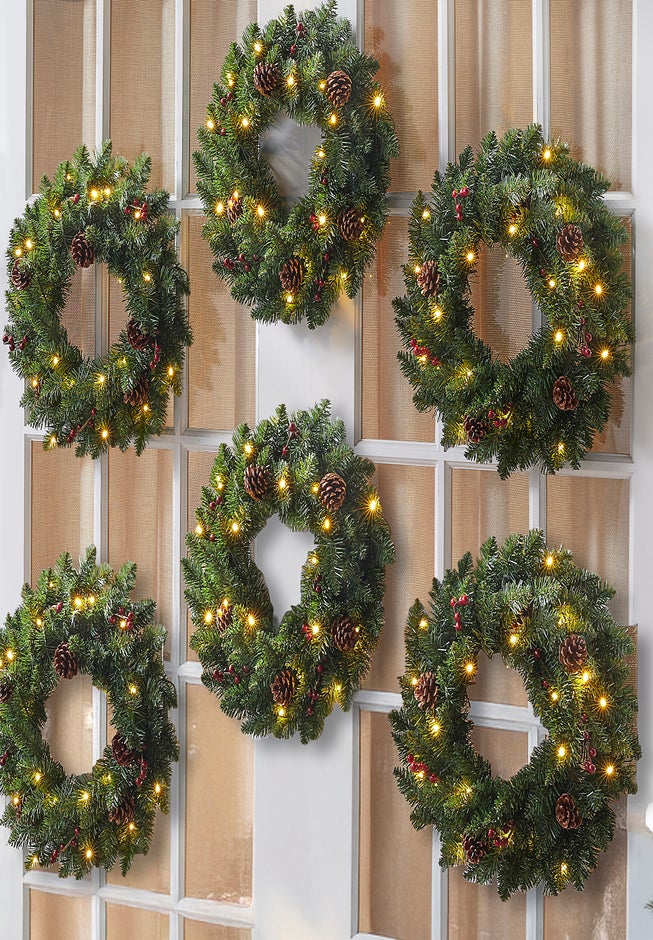 18" Pre-Lit Arrow-Tip Wreaths, Set of 6