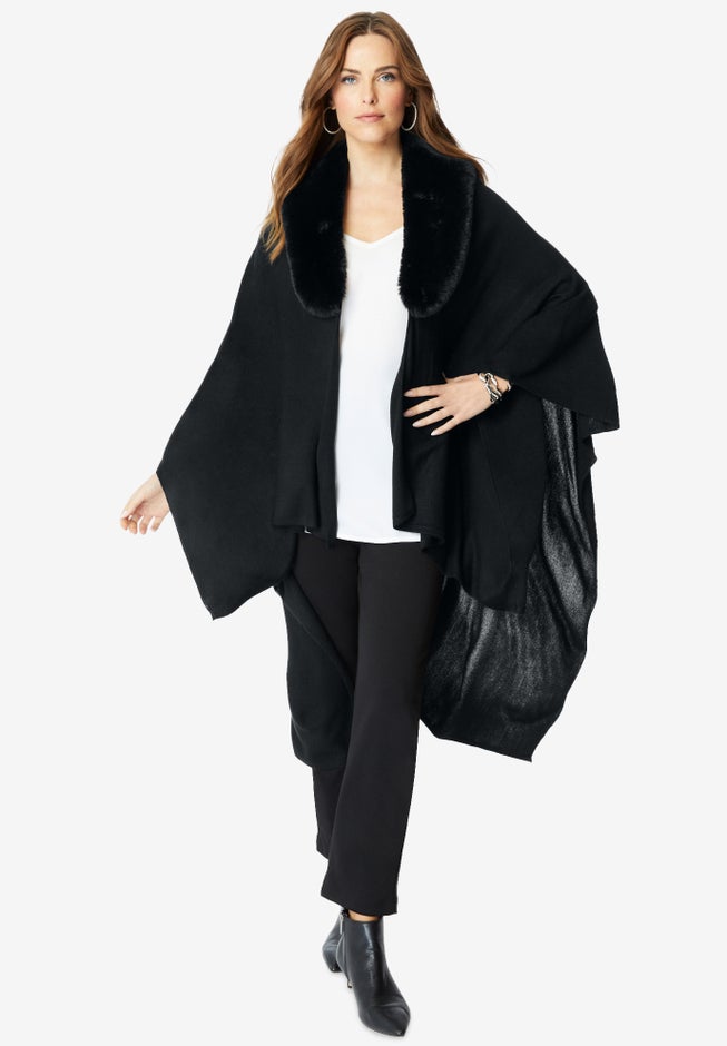 The chicest winter accessory? This wrap shawl, complete with faux fur collar.