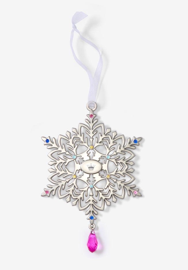Sparkle All the Way! This special-edition holiday ornament from Hallmark was created just for you! It features an intricate metal filigree snowflake set with gems in a rainbow of colors. A dangling pink teardrop gem completes the dazzling effect. Makes a great gift—if you can bear to give it away!