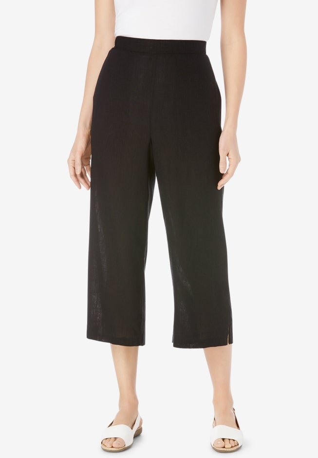 • Pull-on design with a smooth flat-front waist and elastic back for a customized fit.