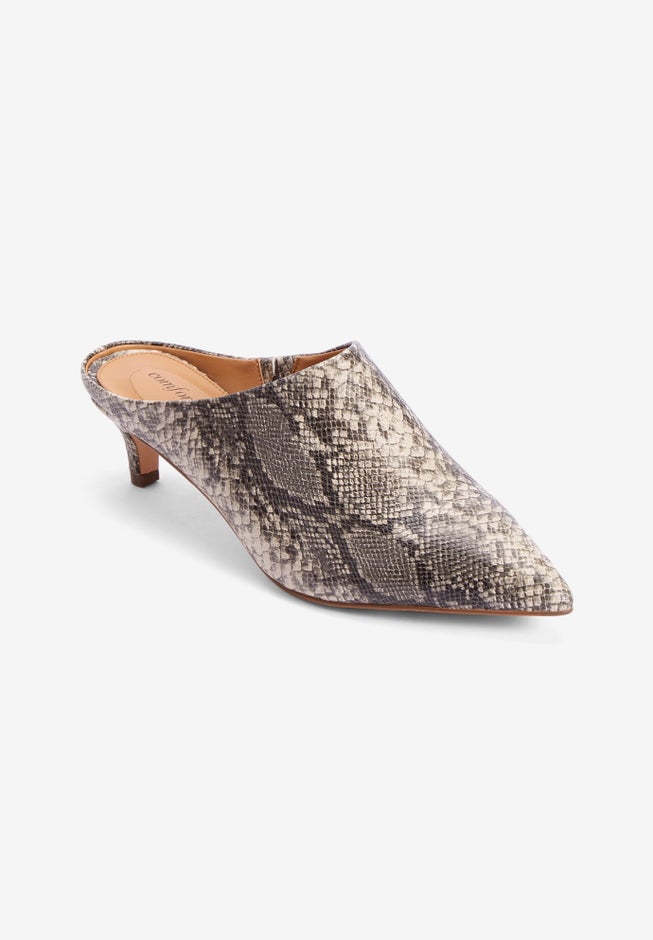 Leather-like mules available in full and half sizes 7-11, 12 M; 7-11, 12 W; 7-11, 12 WW