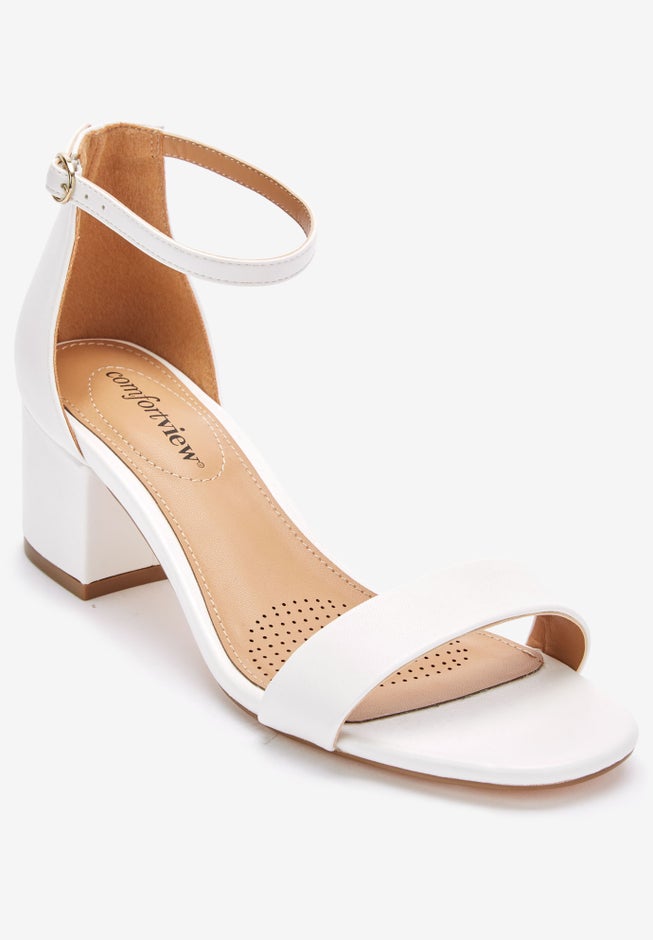 Ankle strap sandals available in full and half sizes 7-11, 12 M; 7-11, 12 W; 7-11, 12 WW