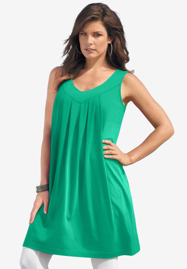 An absolutely stunning tank top to keep in your closet with a pleated front and a V-back design. With its extended length, this tunic tank is just the right mix of style and full coverage.